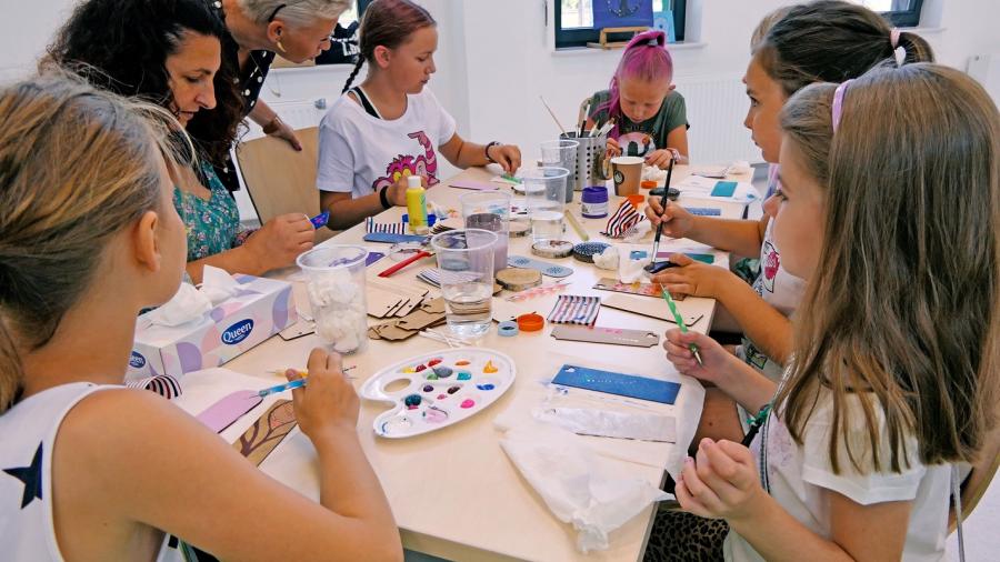 W ramach zajęć prowadzone są warsztaty z rękodzieła, śpiewania, gry i zabawy dla dzieci. Dla najmłodszych mamy przygotowanych wiele atrakcji jak aktywna podłoga, klocki przestrzenne K’NEX czy możliwość malowania farbami olejnymi.